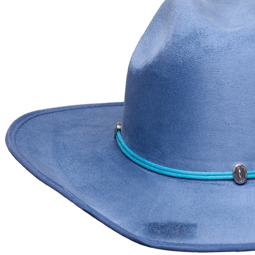 O design do modelo Country Club é composto por uma fina band em camurça com pingentes de conchos prata como um chapéu tradicional de vaqueiro.