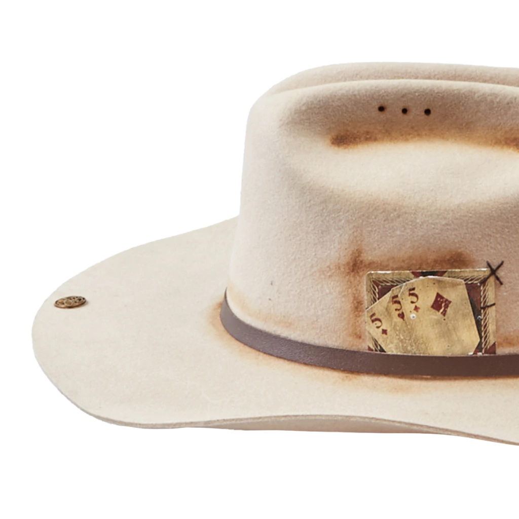 Chapéu Bege estilo Country Clássico com design autoral da Tualma, fabricado cuidadosamente à mão em material de Feltro Premium de gramatura 210 g/m²g (20x). O Feltro Premium (melhor do mercado) é importado e engomado, o que torna a estrutura do chapéu mais rígida e resistente.