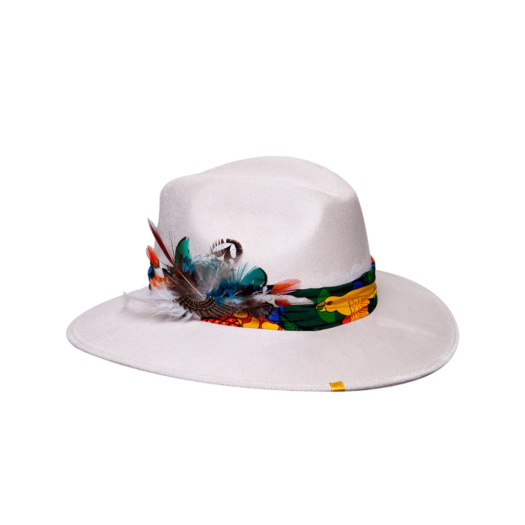 Chapéu Branco estilo Fedora Australiano com design autoral da Tualma, fabricado cuidadosamente de forma manual com uma matéria-prima exclusiva, de alta qualidade: o Ecosuede, fruto do trabalho artesanal de mestres mexicanos, parceiros exclusivos da Tualma. Essa origem carrega o prestígio de uma cultura profundamente enraizada na confecção artesanal de chapéus, equilibrando saberes antigos e tecnologia moderna para criar uma base única. Essa matéria-prima importada, alinhada ao design disruptivo da Tualma oferece estilo, resistência e conforto térmico para o clima tropical do Brasil.