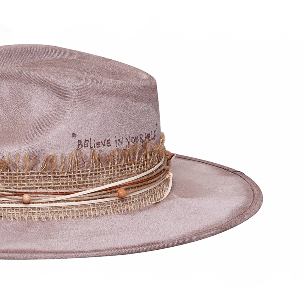 Chapéu Bege estilo Fedora Clássico com design autoral da Tualma, fabricado cuidadosamente de forma manual com uma matéria-prima exclusiva, de alta qualidade: o Ecosuede, fruto do trabalho artesanal de mestres mexicanos, parceiros exclusivos da Tualma. Essa origem carrega o prestígio de uma cultura profundamente enraizada na confecção artesanal de chapéus, equilibrando saberes antigos e tecnologia moderna para criar uma base única. Essa matéria-prima importada, alinhada ao design disruptivo da Tualma oferece estilo, resistência e conforto térmico para o clima tropical do Brasil.
