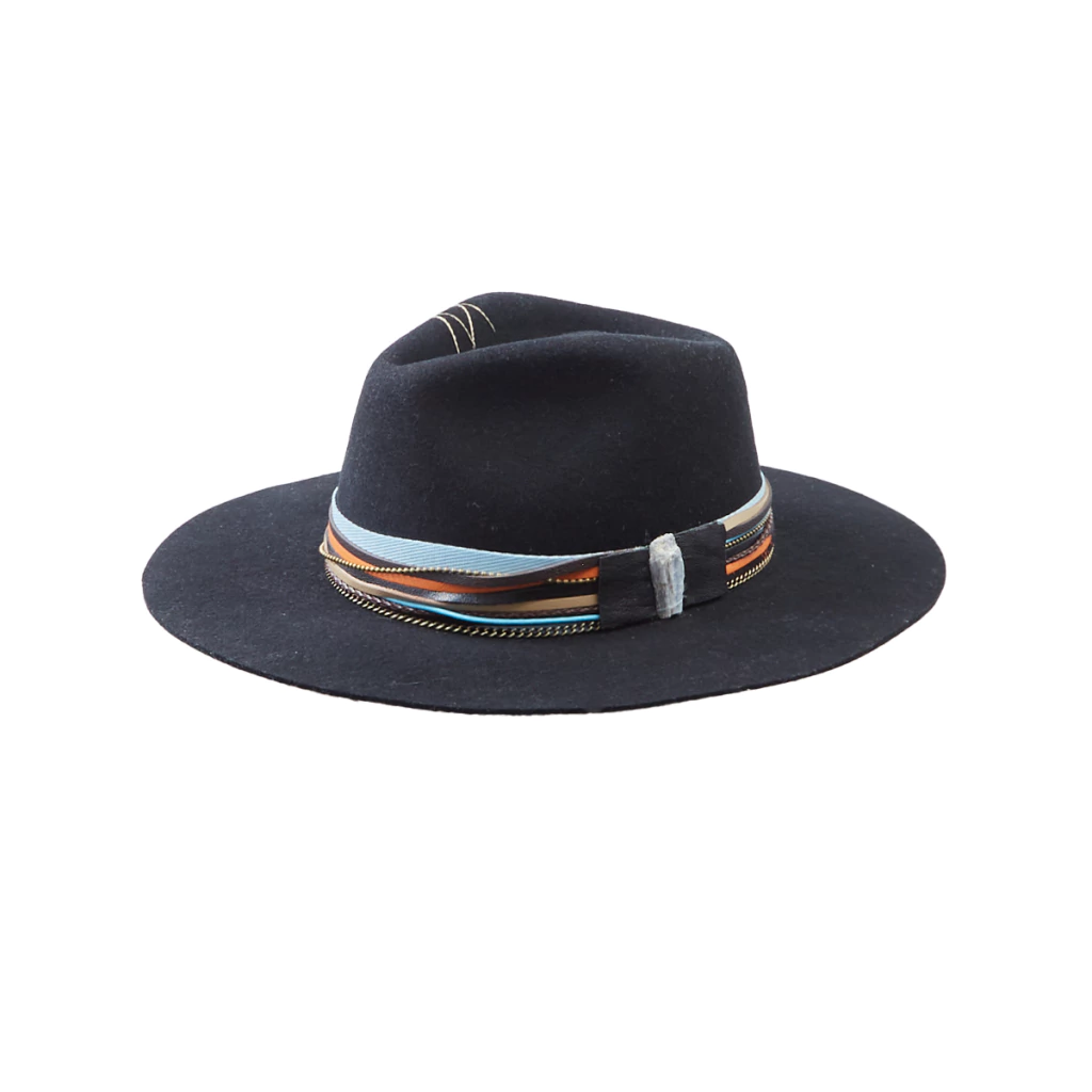 Chapéu Preto estilo Fedora Clássico com design autoral da Tualma, fabricado cuidadosamente à mão em material de Feltro Premium Preto de gramatura 210 g/m²g (20x). O Feltro Premium (melhor do mercado) é importado e engomado, o que torna a estrutura do chapéu mais rígida e resistente.