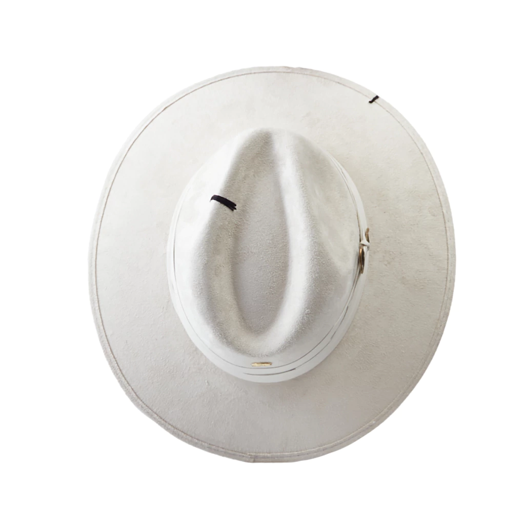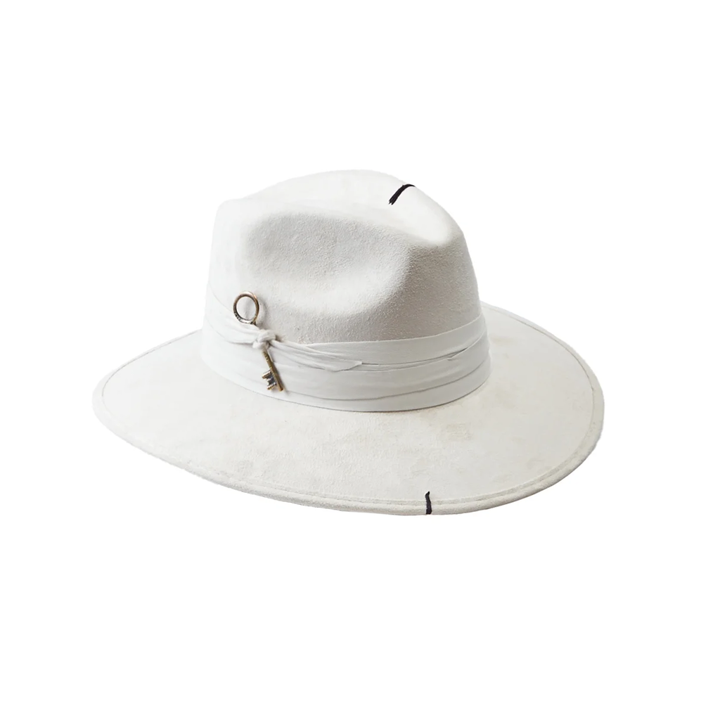 Chapéu Branco estilo Fedora Australiano com design autoral da Tualma, fabricado cuidadosamente de forma manual com uma matéria-prima exclusiva, de alta qualidade: o Ecosuede, fruto do trabalho artesanal de mestres mexicanos, parceiros exclusivos da Tualma. Essa origem carrega o prestígio de uma cultura profundamente enraizada na confecção artesanal de chapéus, equilibrando saberes antigos e tecnologia moderna para criar uma base única. Essa matéria-prima importada, alinhada ao design disruptivo da Tualma oferece estilo, resistência e conforto térmico para o clima tropical do Brasil.