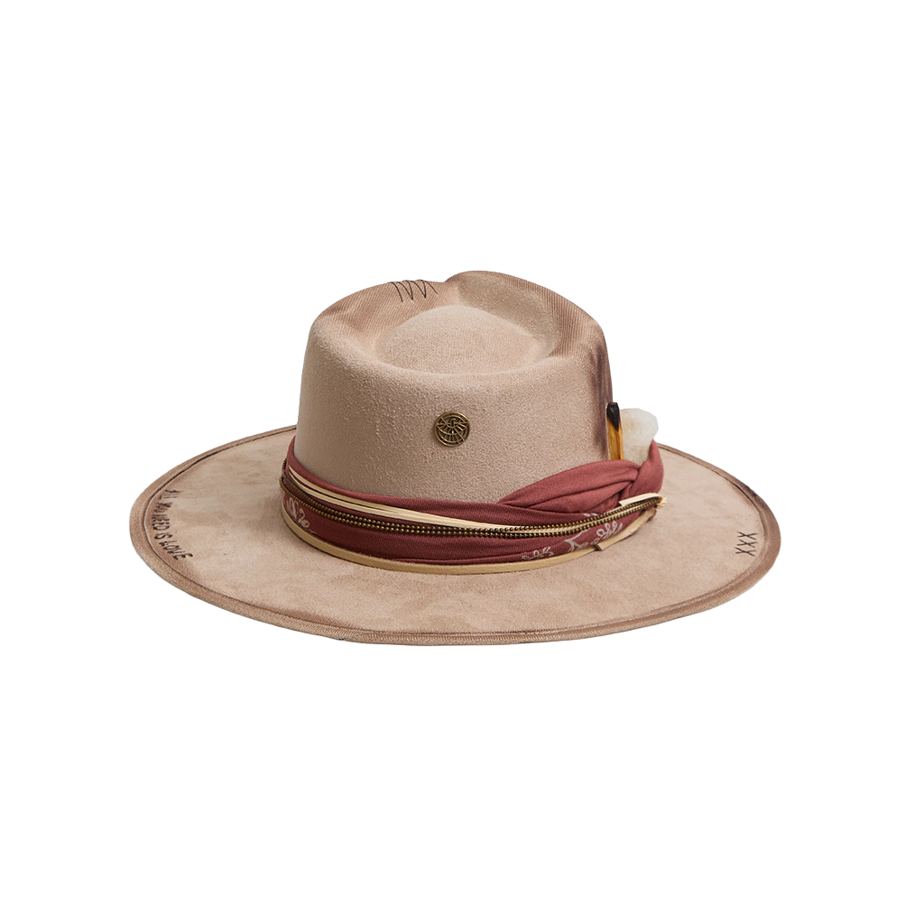 Chapéu Bege estilo Fedora Clássico com design autoral da Tualma, fabricado cuidadosamente de forma manual com uma matéria-prima exclusiva, de alta qualidade: o Ecosuede, fruto do trabalho artesanal de mestres mexicanos, parceiros exclusivos da Tualma. Essa origem carrega o prestígio de uma cultura profundamente enraizada na confecção artesanal de chapéus, equilibrando saberes antigos e tecnologia moderna para criar uma base única. Essa matéria-prima importada, alinhada ao design disruptivo da Tualma oferece estilo, resistência e conforto térmico para o clima tropical do Brasil.
