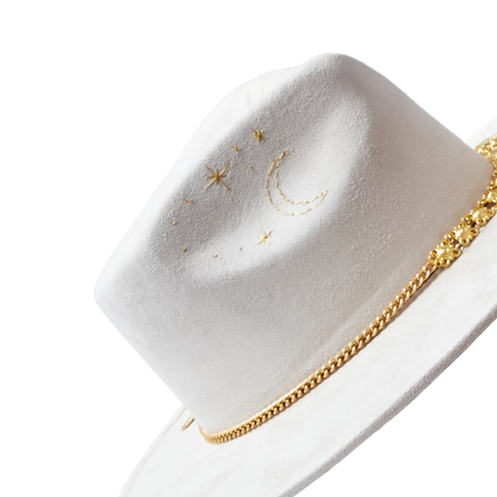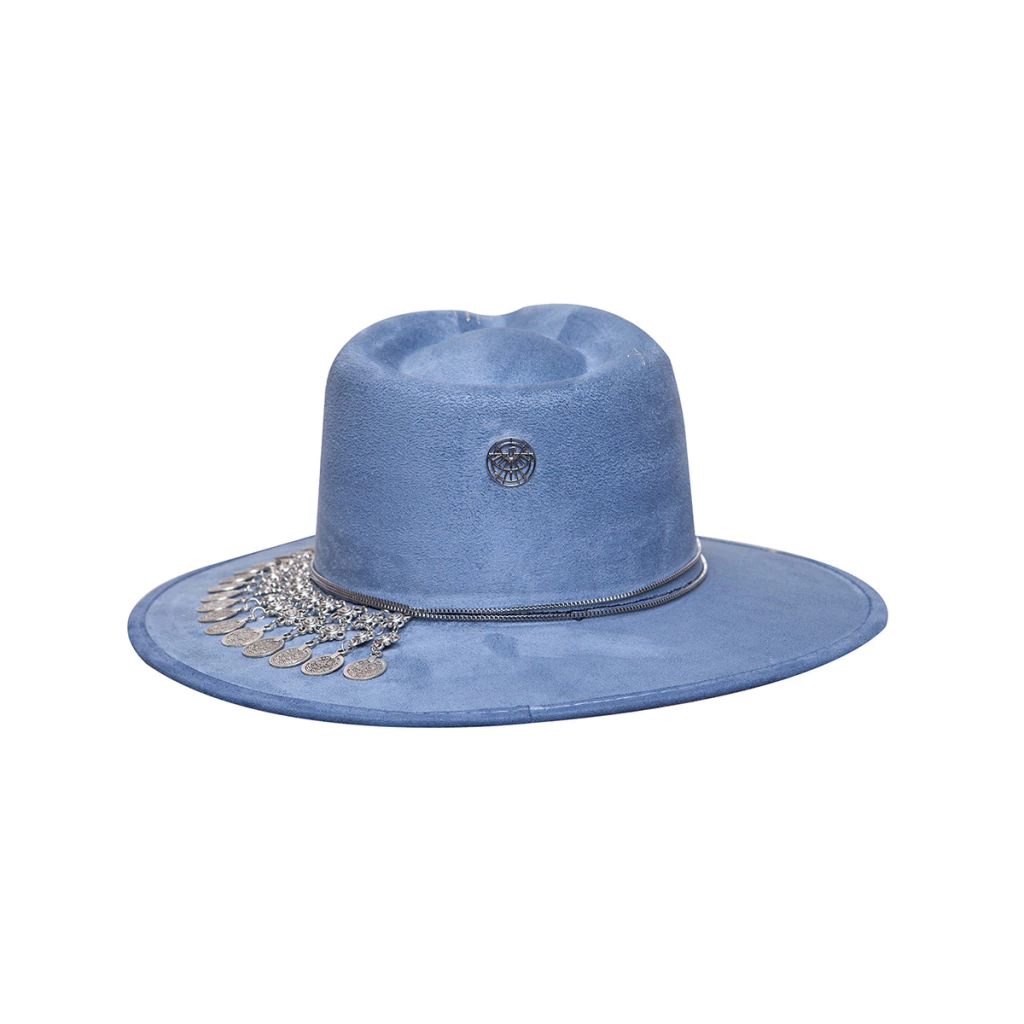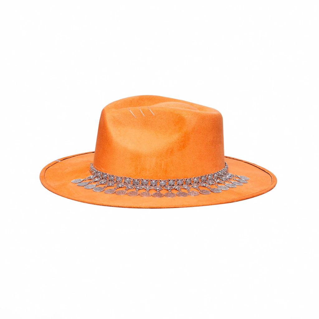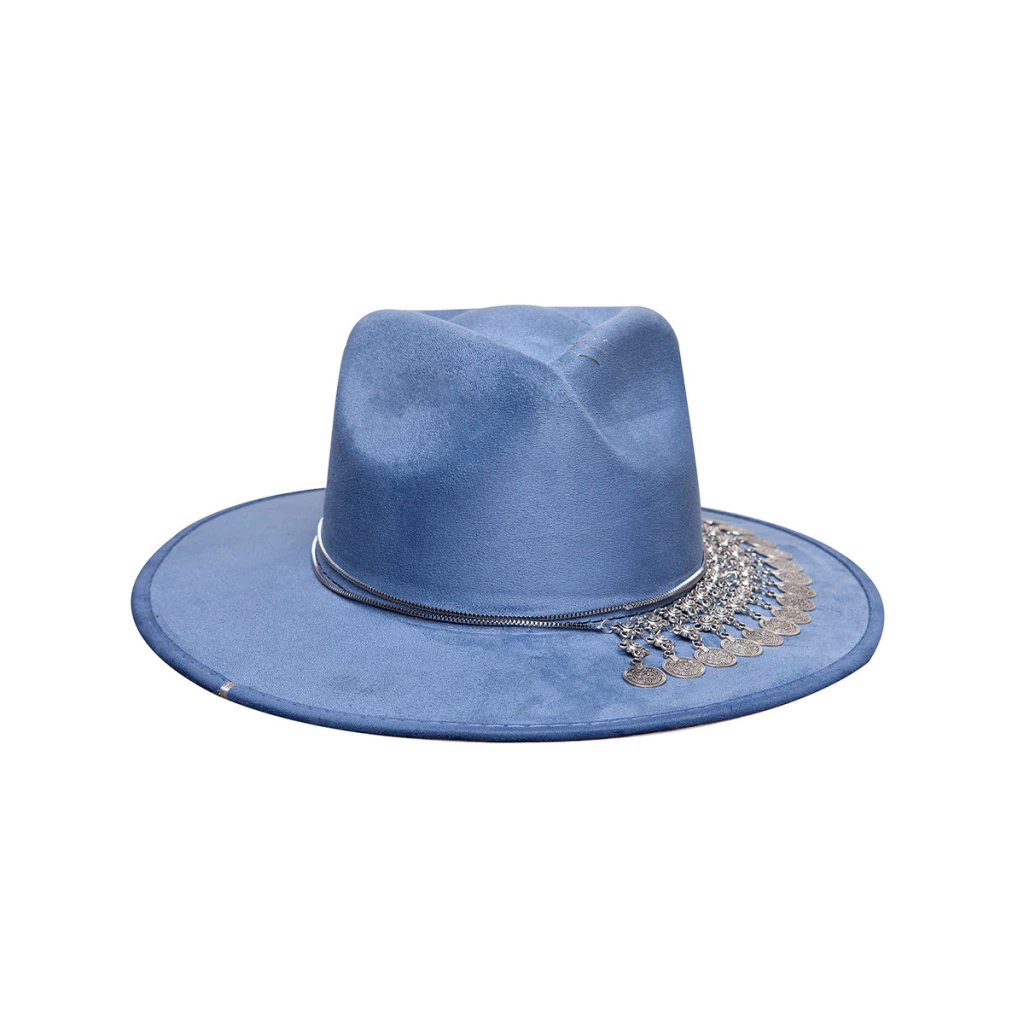 O design do modelo Shooting Star é composto por uma band/faixa externa em fina corrente de metal prata com moedas ciganas presas à aba do chapéu.