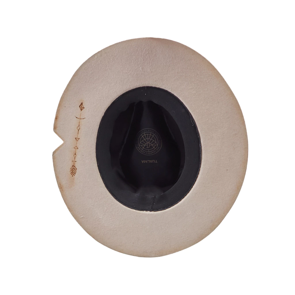 Chapéu Marrom Claro estilo Fedora Clássico com design autoral da Tualma, fabricado cuidadosamente à mão em material de Feltro Premium de gramatura 210 g/m²g (20x). O Feltro Premium (melhor do mercado) é importado e engomado, o que torna a estrutura do chapéu mais rígida e resistente.