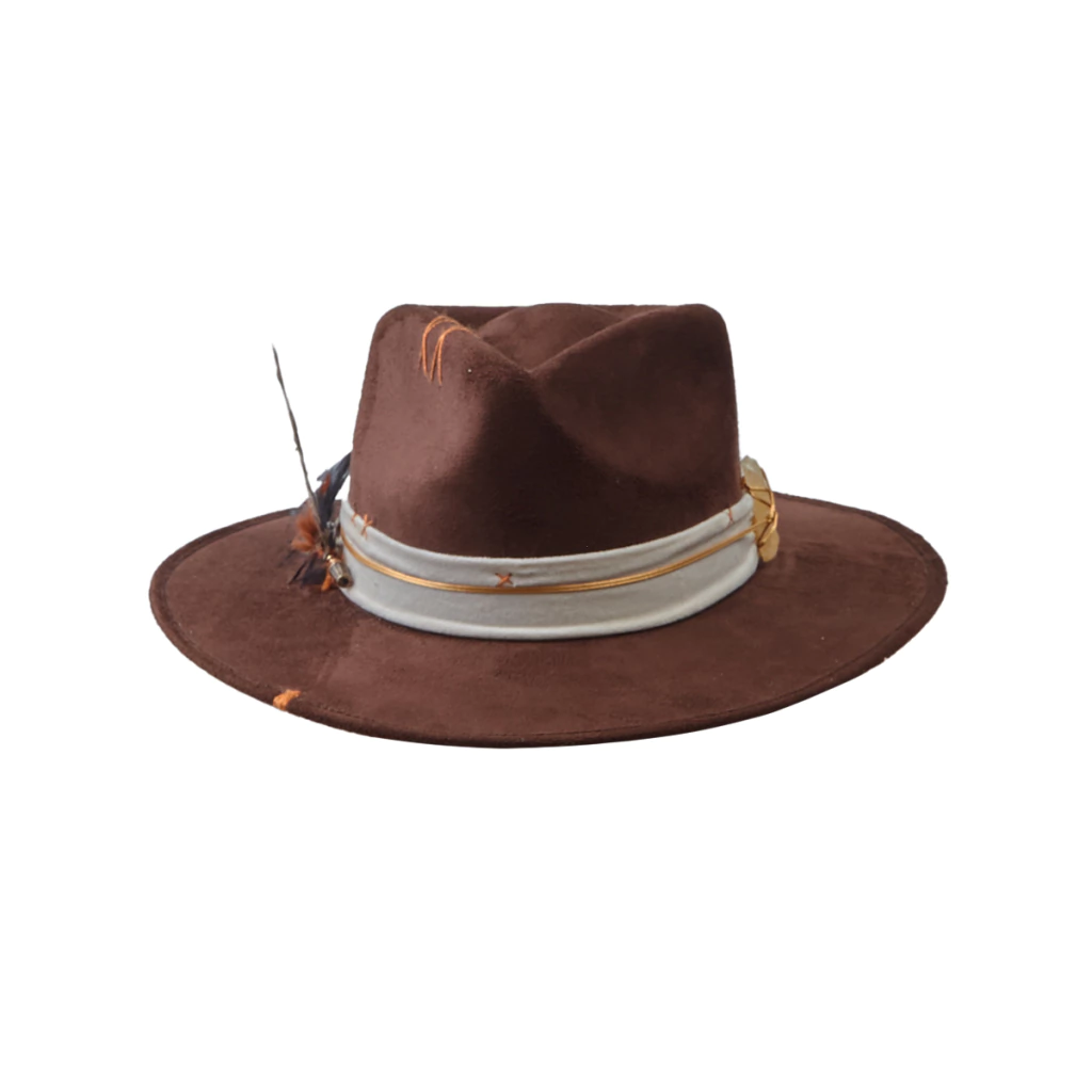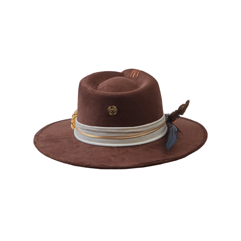 Chapéu estilo Fedora Clássico com design autoral da Tualma, fabricado cuidadosamente de forma manual com uma matéria-prima exclusiva, de alta qualidade: o Ecosuede, fruto do trabalho artesanal de mestres mexicanos, parceiros exclusivos da Tualma. Essa origem carrega o prestígio de uma cultura profundamente enraizada na confecção artesanal de chapéus, equilibrando saberes antigos e tecnologia moderna para criar uma base única. Essa matéria-prima importada, alinhada ao design disruptivo da Tualma oferece estilo, resistência e conforto térmico para o clima tropical do Brasil.