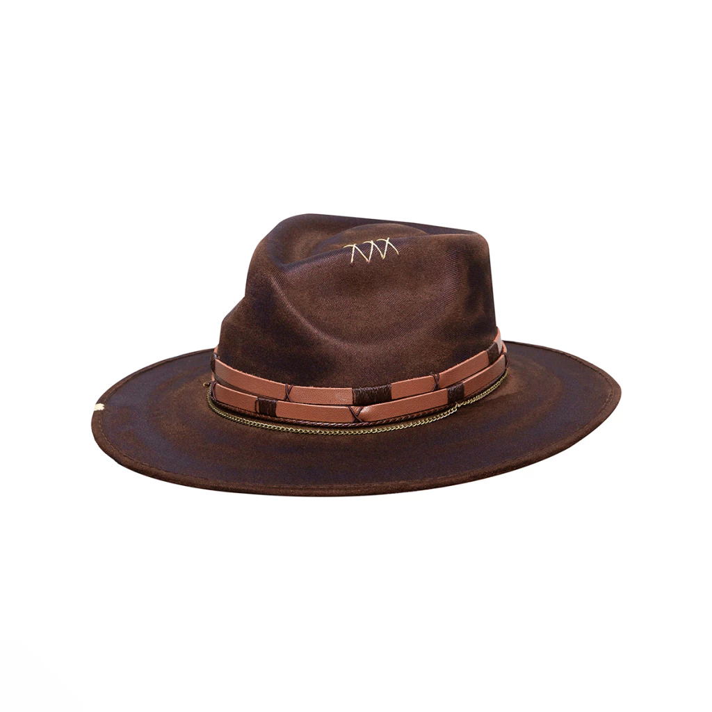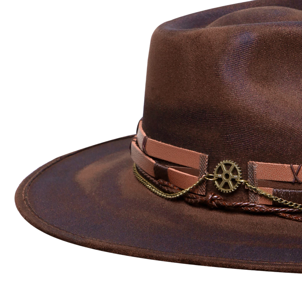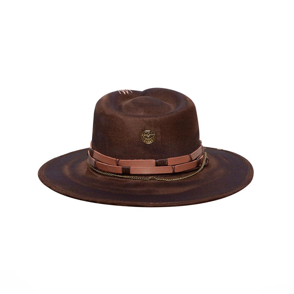 Chapéu Marrom Escuro estilo Fedora Clássico com design autoral da Tualma, fabricado cuidadosamente de forma manual com uma matéria-prima exclusiva, de alta qualidade: o Ecosuede, fruto do trabalho artesanal de mestres mexicanos, parceiros exclusivos da Tualma. Essa origem carrega o prestígio de uma cultura profundamente enraizada na confecção artesanal de chapéus, equilibrando saberes antigos e tecnologia moderna para criar uma base única. Essa matéria-prima importada, alinhada ao design disruptivo da Tualma oferece estilo, resistência e conforto térmico para o clima tropical do Brasil.