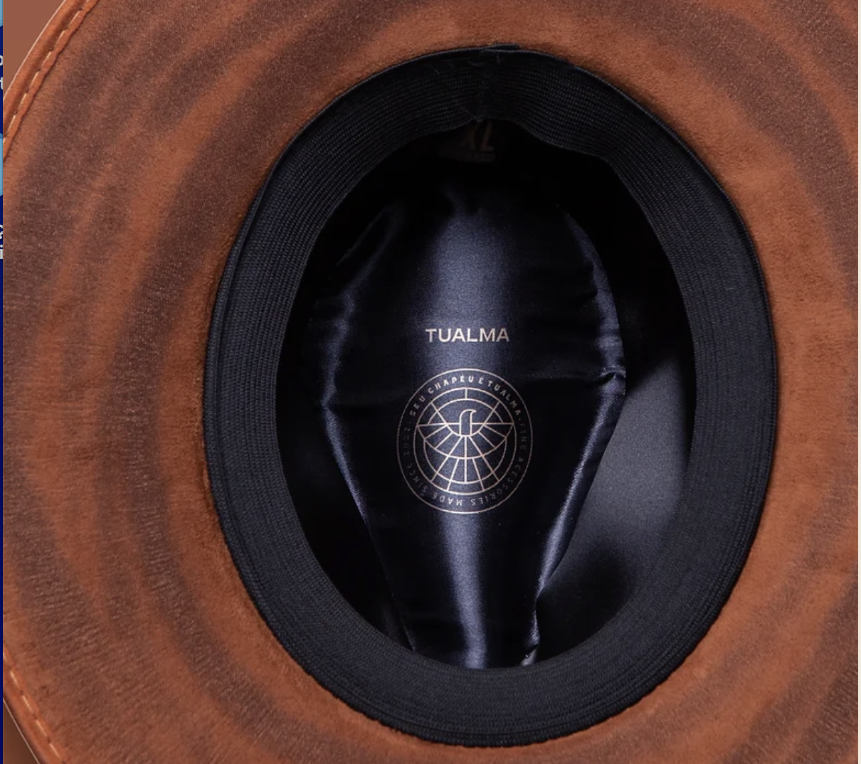 MATÉRIA PRIMA ARTESANAL A matéria-prima dos chapéus Tualma é o nosso grande diferencial: utilizamos Suede (couro ecológico) do México, propícios para o clima quente, e feltro de lã 100% australiana, considerado o melhor feltro do mundo. Cada item é feito à mão, portanto nenhuma peça é 100% idêntica à outra. Nossos clientes podem escolher entre os conceitos criados e oferecidos pela Tualma ou podem encomendar peças personalizadas de acordo com seu gosto pessoa |